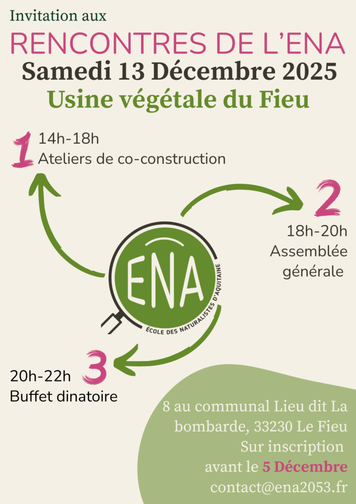 L’ENA c’est l’École des Naturalistes d’Aquitaine. Toute ressemblance avec la prestigieuse institution qui a vu naitre nombre de nos dirigeants est purement…. volontaire ! Notre objectif ? CONSTRUIRE & DIFFUSER le SOCLE NATURALISTE dans les champs sociaux et politiques. Prêts pour l’aventure?